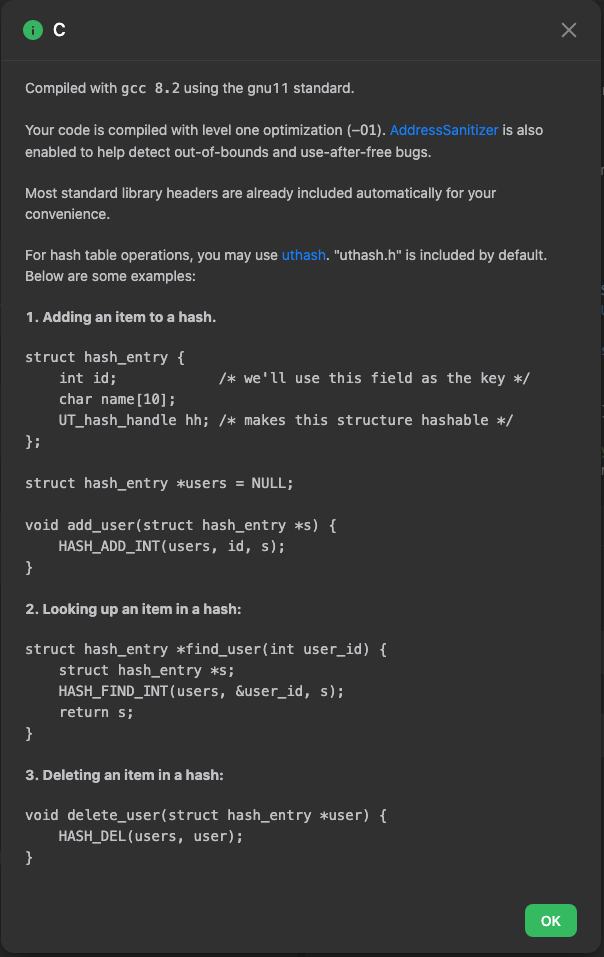到現在才發現原來 leetcode 很貼心地幫你內建了 uthash.h 請安心地用吧 XDDD